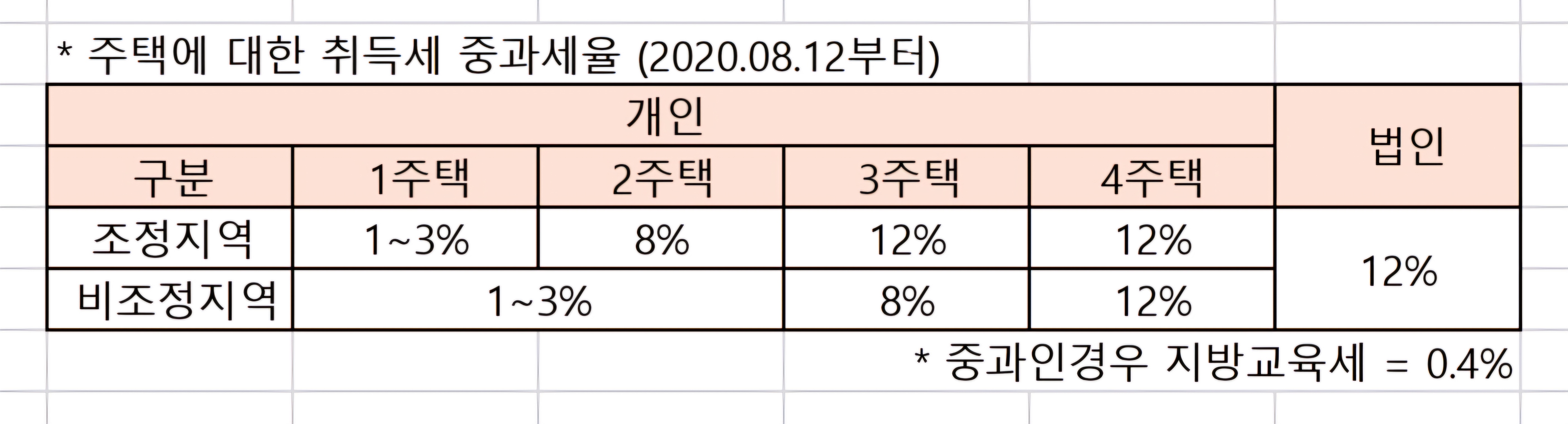 주택수가 많아지면 취득세율이 높아지기 때문에 개인일경우 세대원의 주택수를 잘파악하셔서 투자하시길 바랍니다.