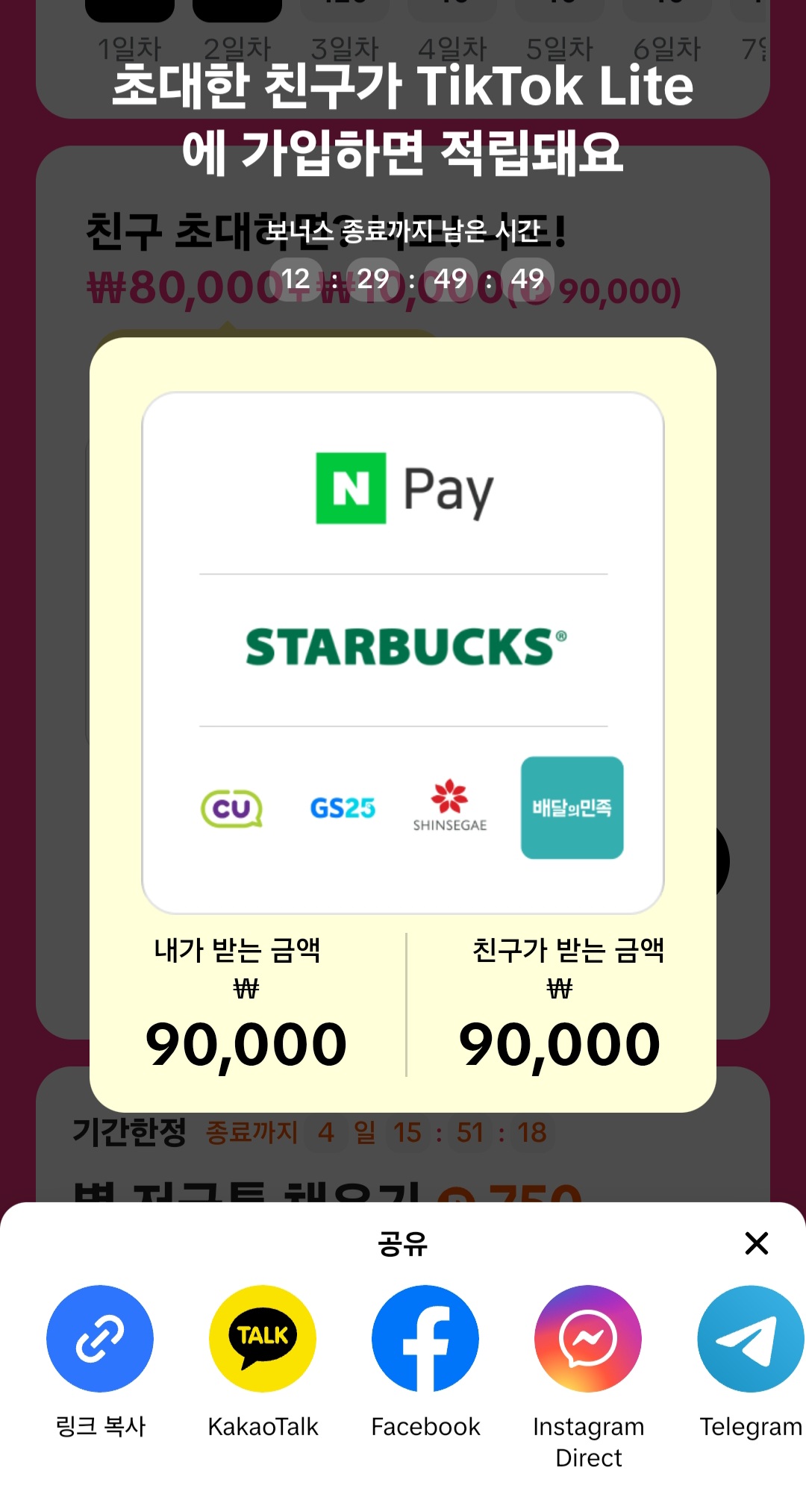 틱톡라이트 친구초대 하면 너도 나도 9만원 본문
