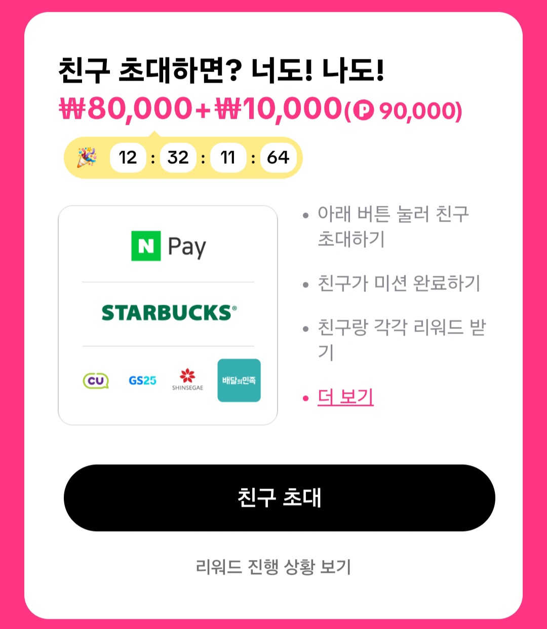주어진 제한 시간 내에 친구를 초대하고 미션에 성공하면 보너스 포인트를 획득할 수 있습니다.