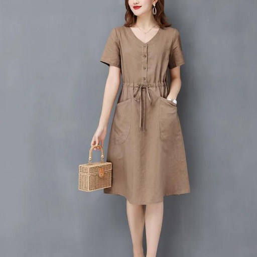 이 원피스를 처음 접했을 때 가장 만족스러웠던 점은 바로 '루즈핏' 디자인입니다. 무더운 여름에는 몸에 달라붙는 옷보다 여유로운 실루엣이 훨씬 편안하고 시원하게 느껴지기 마련인데요. ANYOU 여성 여름원피스는 몸에 붙지 않는 낙낙한 핏으로 활동성을 보장하면서도, 자연스럽게 떨어지는 라인이 체형 커버에도 탁월합니다. 특히, 빅사이즈이신 분들도 부담 없이 편안하게 착용할 수 있다는 점이 큰 장점이에요. 통통한 팔뚝을 자연스럽게 가려주는 반팔 소매는 물론, 답답해 보이지 않으면서 목선을 길어 보이게 하는 브이넥 디자인은 여성스러운 매력을 한껏 더해줍니다. 미디 기장은 앉거나 움직일 때 전혀 불편함이 없으면서도 단정하고 우아한 분위기를 연출해 주어 어떤 상황에도 잘 어울립니다.