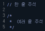 주석은 코드에 간략한 설명을 기재하는 것으로 코드 실행에서 제외 된다.