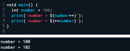 print 문이 먼저 실행되어 100이 출력되고 나서 증감이 진행되어 101이 되고