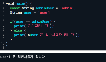 user와 adminUser의 값이 다르므로 결과는 else 문의 코드가 실행된다.