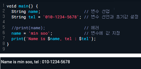 이러한 경우 변수 선언 문장에 late 키워드를 사용하면 에러를 조치할 수 있다.