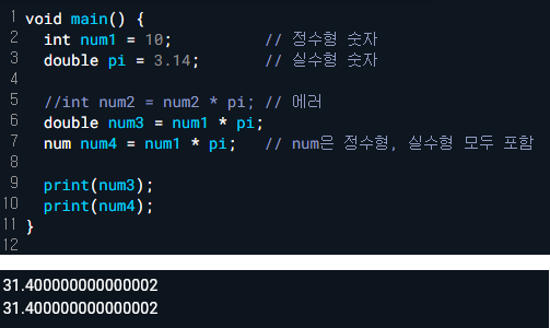 num4는 num타입으로 정수형, 실수형을 모두 포함하므로 정상 처리 된다.