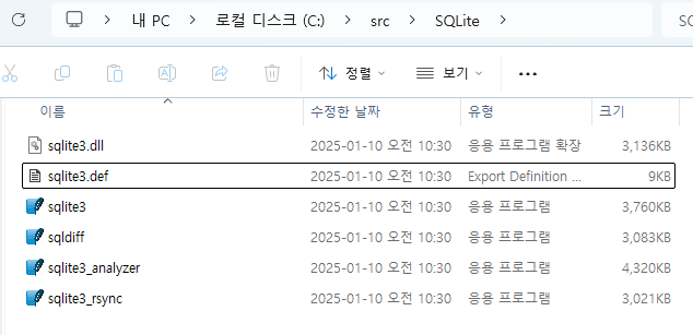 SQLite가 설치된 경로로 이동한뒤 아래를 실행해본다.